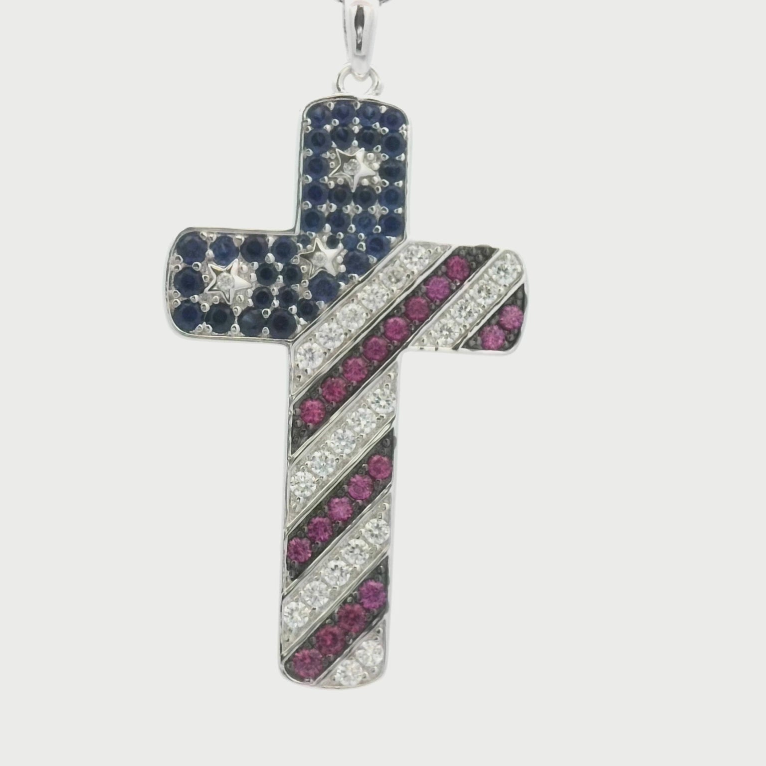 Kelly Herd American Flag Cross Necklace - Sterling Silver