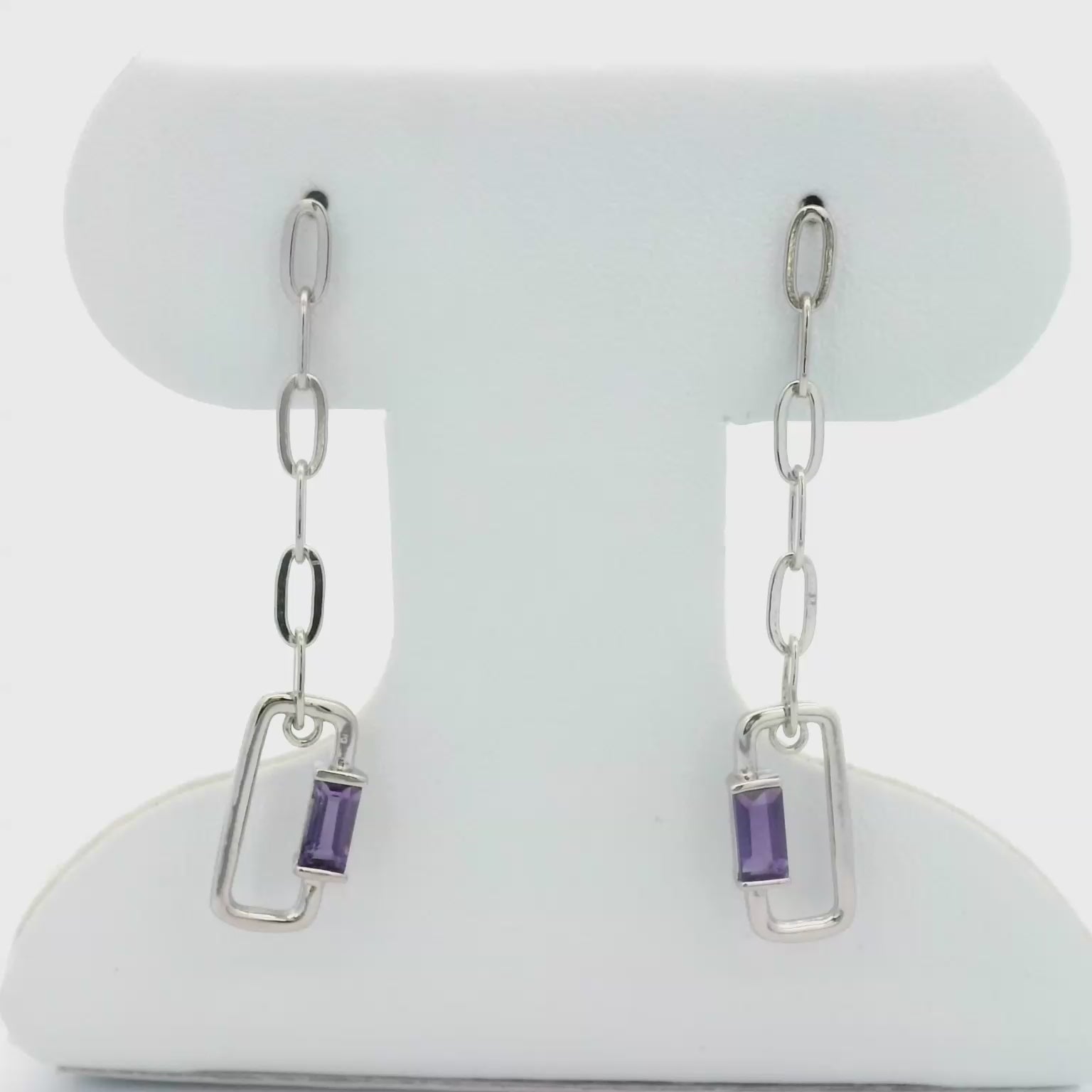 Kelly Herd Amethyst Baguette Paper Clip Dangle Earrings - Sterling Silver