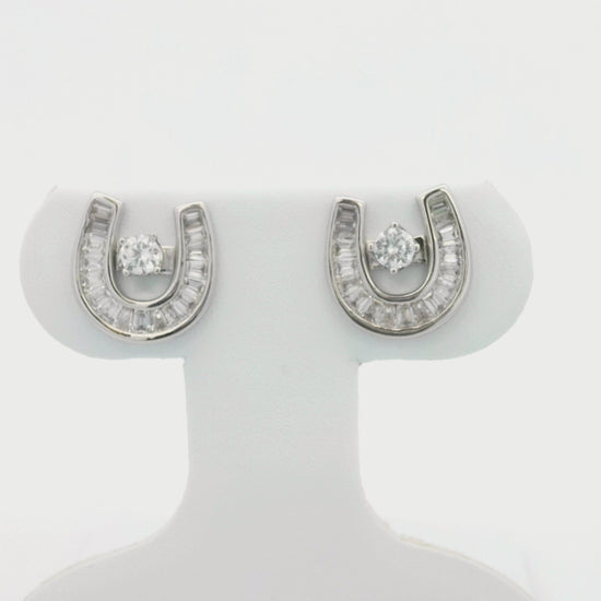 Kelly Herd Baguette Horseshoe Jacket Stud Earrings offer subtle equestrian style with flexibility! These sterling silver earrings feature tapered CZ baguette horseshoe jackets over a .50ct CZ stud earring with sterling silver post. Wear them with the jacket for some equestrian bling, or without when you want a simple, classic look.