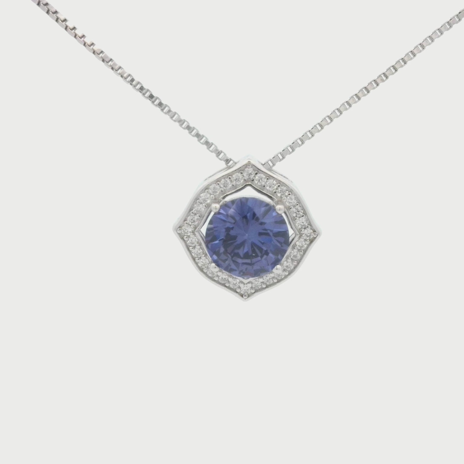 Classic with some curves! Kelly Herd's Blue with Clear Accents Necklace is a blue cubic zirconia solitaire , framed by clear cubic zirconia. Rather than straight lines, the frames curve and are set at angles, giving this pendant just a bit of a whimsical vibe. Matching earrings are available. Box chain.