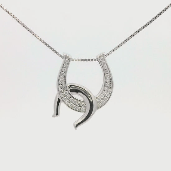 Double the luck! The Kelly Herd Double Horseshoe Necklace has one upright horseshoe enhanced with CZ stones, and another smooth, shiny one casually hooked across. This gives the necklace a fun, whimsical affect. Sterling silver. Comes with adjustable 16-18" chain.