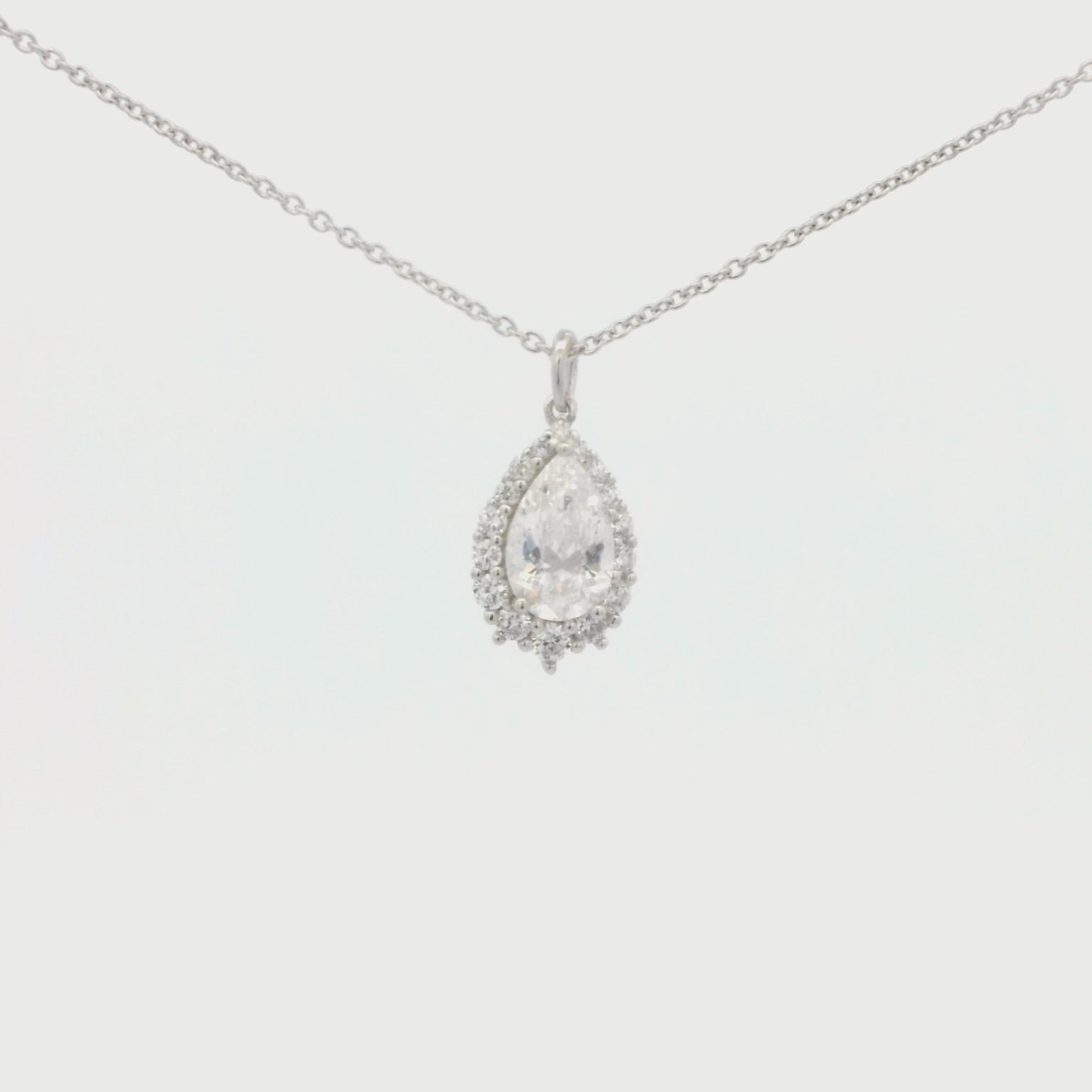 Kelly Herd Clear Pear Halo Pendant - Sterling Silver