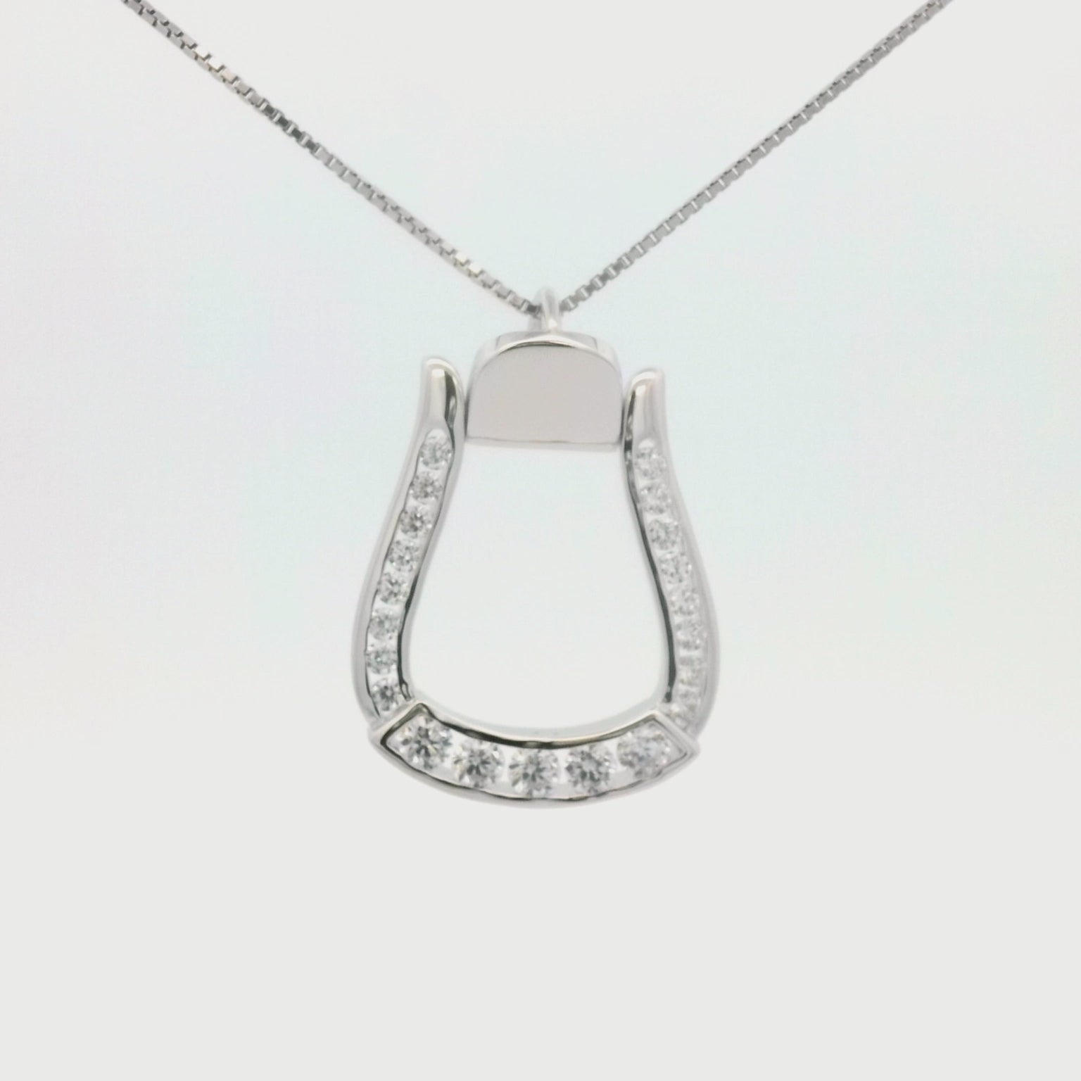Add some Cowgirl sparkle to your look with the Kelly Herd Oxbow Clear Stone Stirrup Necklace. This necklace features an Western oxbow stirrup shaped pendant, fully enhanced with clear CZ. Made of sterling silver, this pendant will catch the light and grab attention! It comes with an adjustable 16-18" chain.