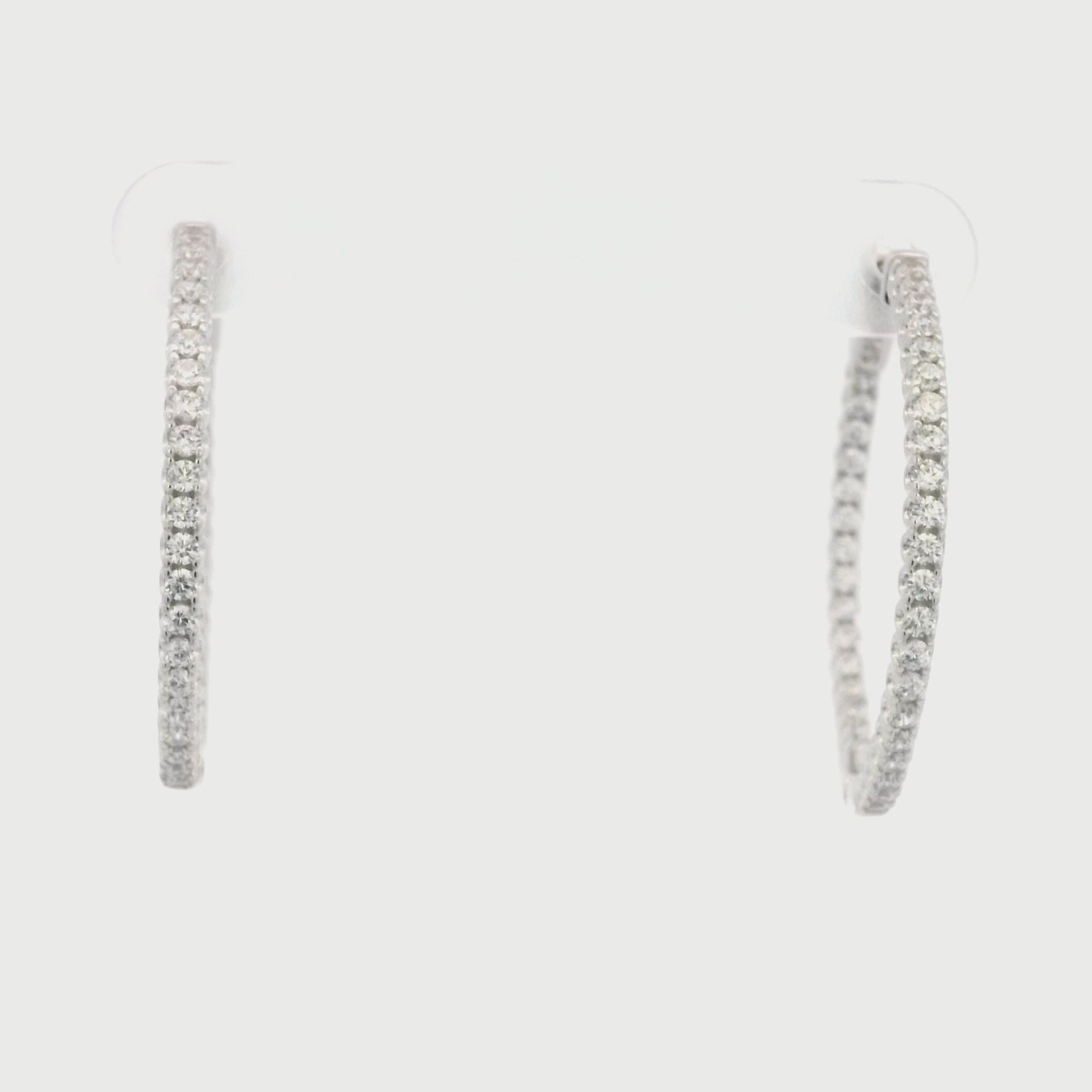 The 40mm diameter of the hoops strikes a perfect balance, making them a versatile choice for both everyday wear and special occasions. The brilliant sparkle of the clear CZ stones captures and reflects light, creating an alluring radiance that effortlessly enhances your natural beauty.