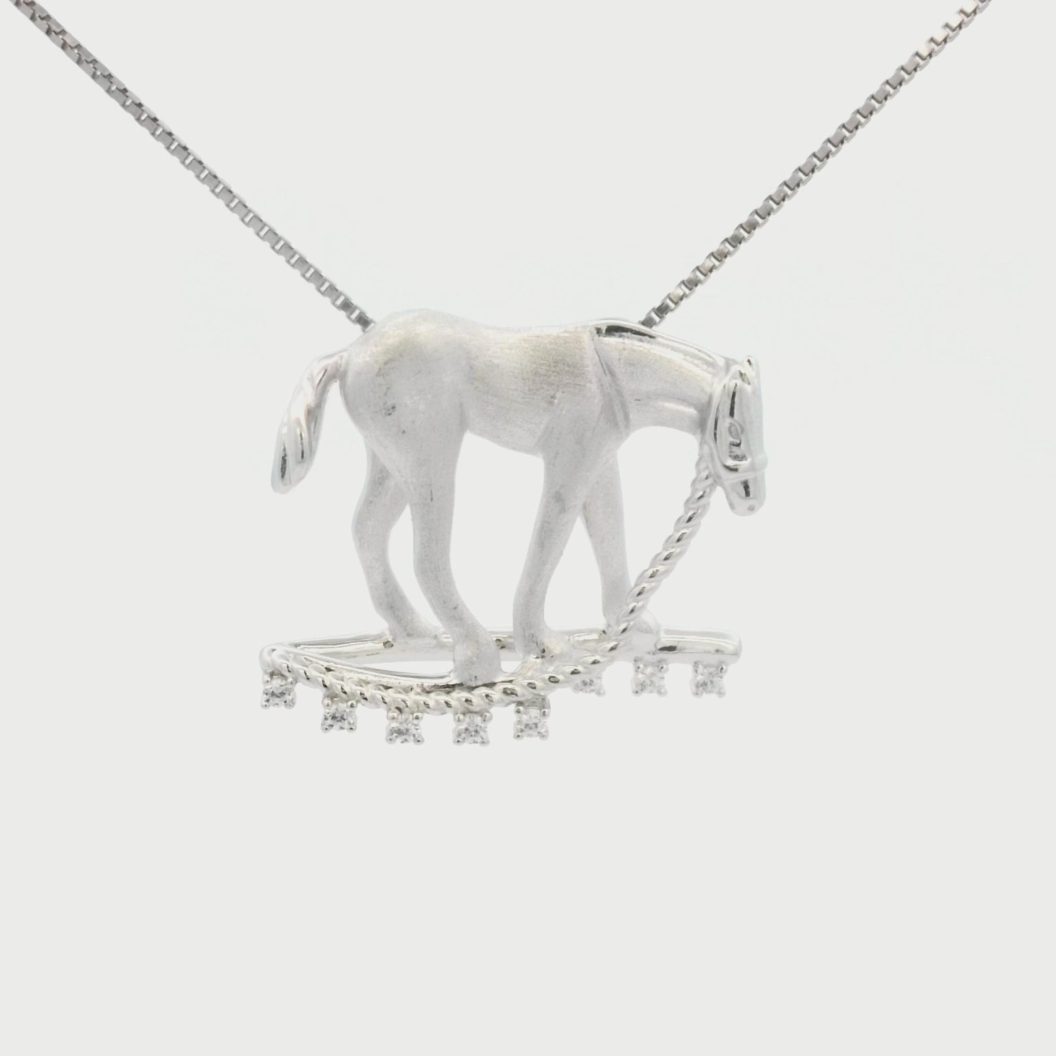 The Kelly Herd Foal & Halter Pendant perfectly captures a moment in the life of a foal, "what is this halter thing they have put on me?!" Beautifully crafted in your choice in sterling silver. Comes with 16-18" adjustable chain.