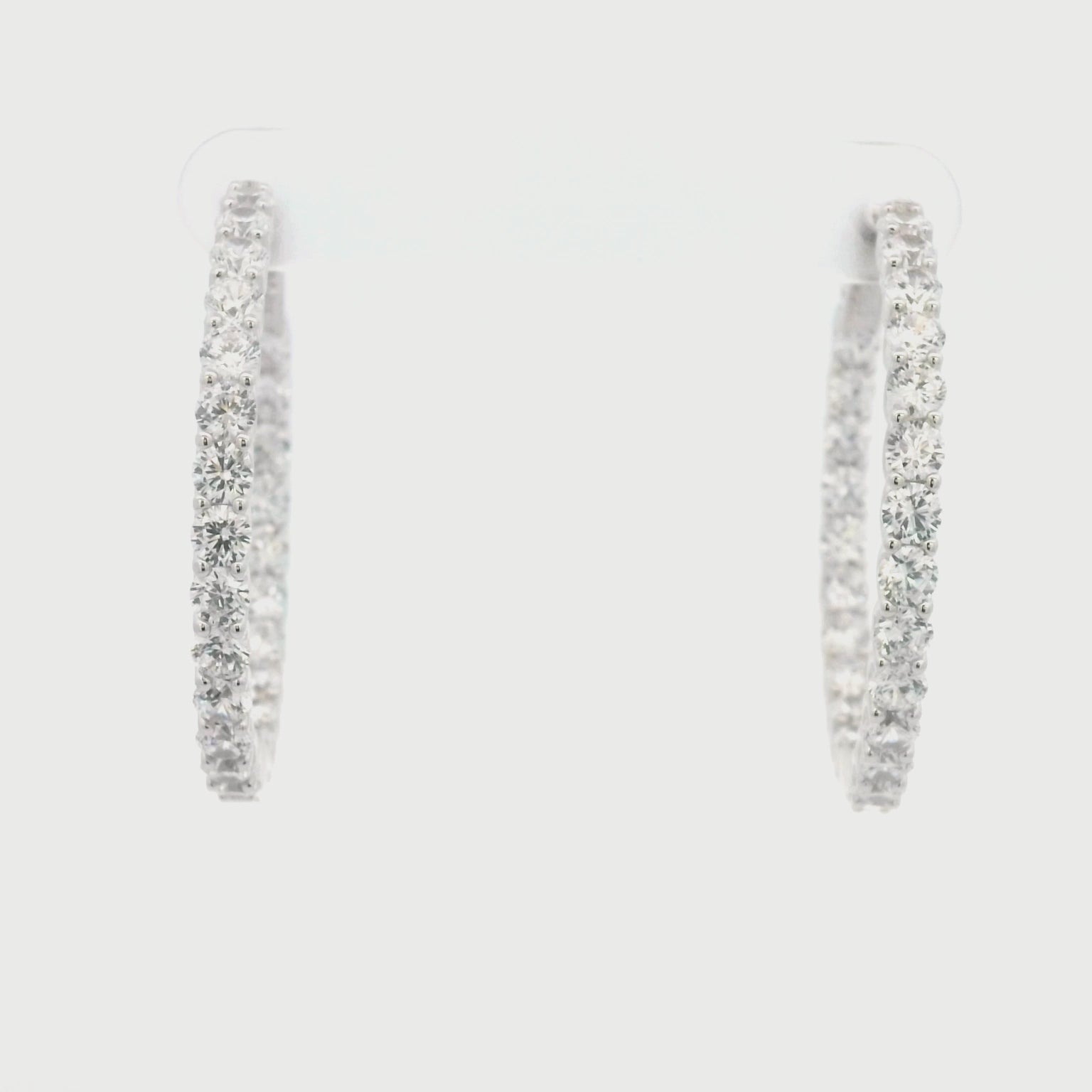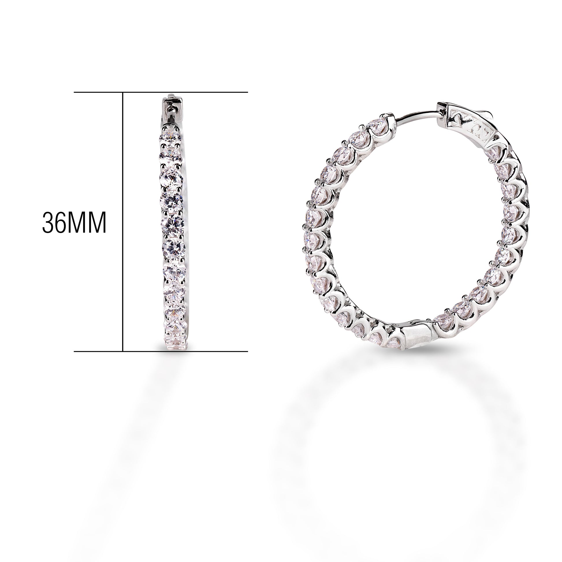 Crafted with precision and attention to detail, the rhodium-plated hoops are adorned with dazzling cubic zirconia stones on both the inside and outside, creating a captivating play of light and sparkle. The vault lock adds a unique and secure element to the design, ensuring these earrings become a standout piece in your collection.