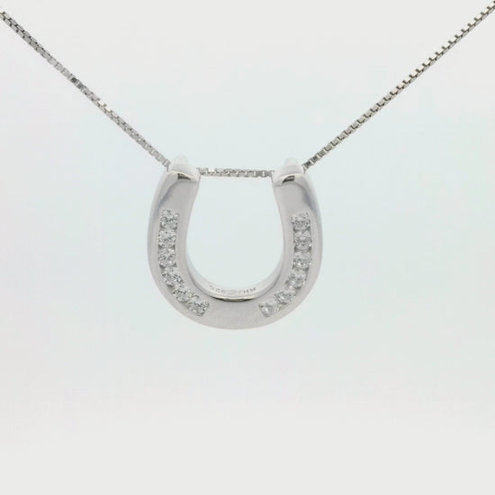 Made of sterling silver, the Kelly Herd Large Horseshoe Necklace features a wide plate horseshoe pendant with cubic zirconia "nails." Any horse lover will immediately appreciate this design! Comes with 16-18" adjustable chain.