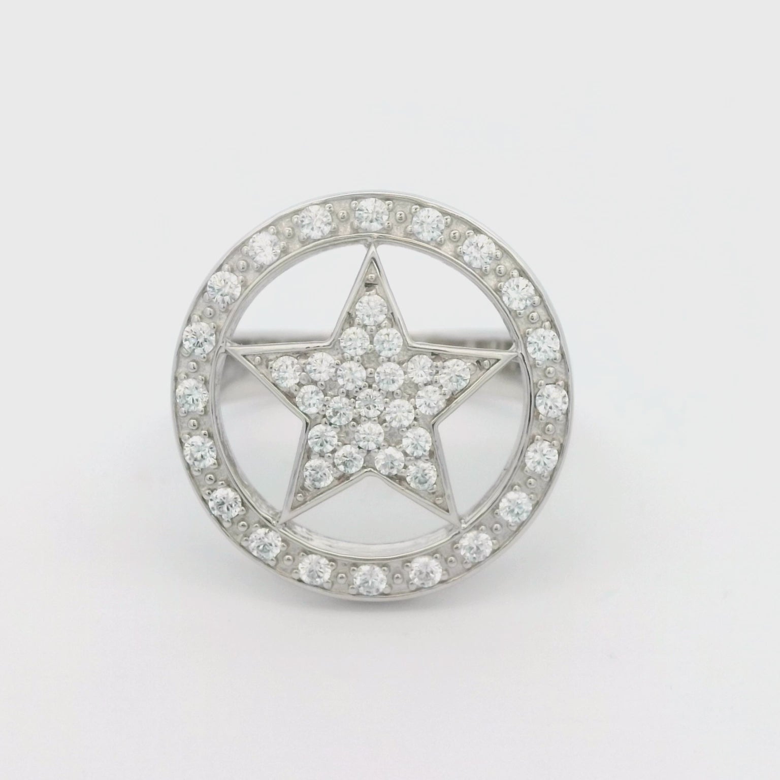 Show the world you're a star! The Kelly Herd Large Star Ring features a pave set cubic zirconia star in a circle. Made of sterling silver, this bold ring makes a statement. A great gift idea for the star in your life!