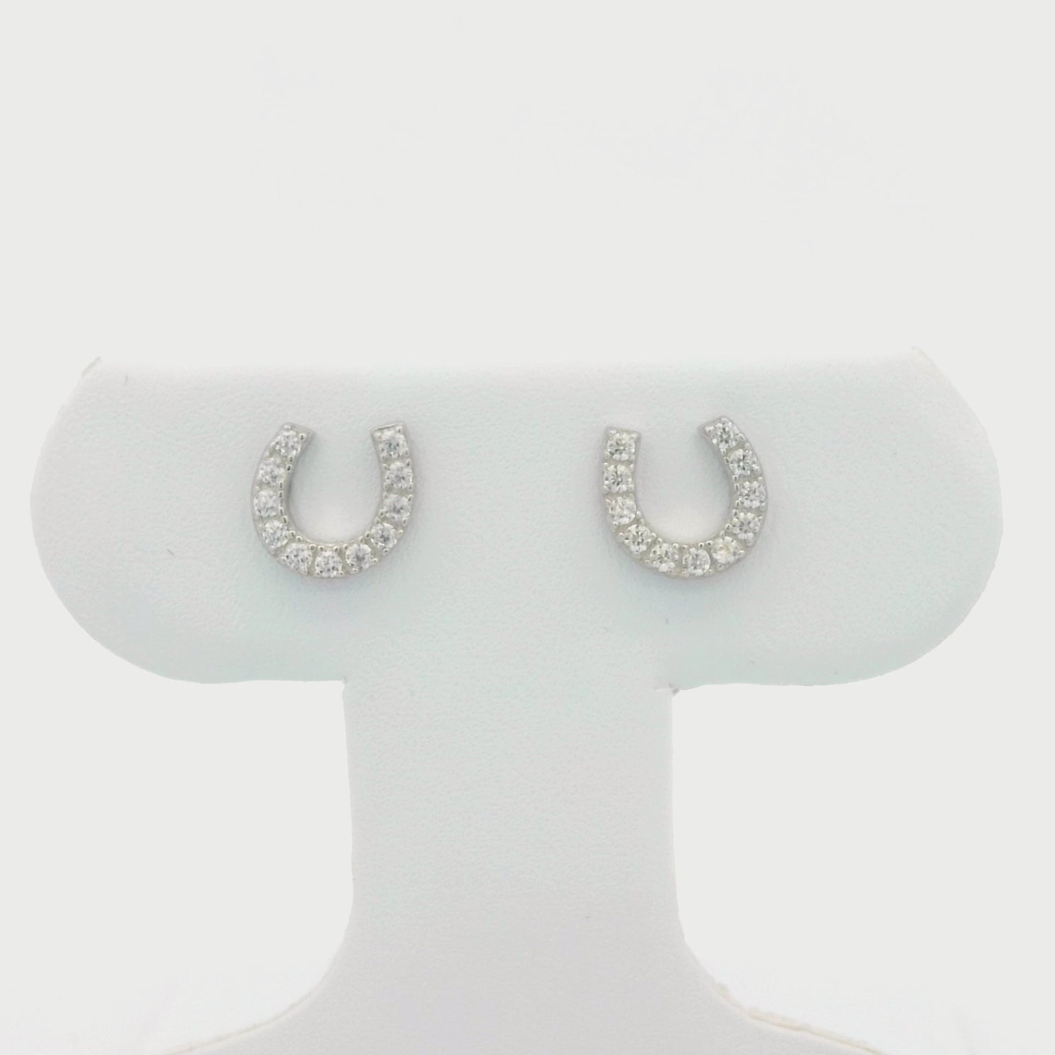 The smooth lines and offset mounting of these earrings produce an eye catching look. The Kelly Herd Offset Horseshoe Earrings are sure to dazzle with their polished sterling silver mounting and shimmering clear cubic zirconia stones. They are the perfect accent to even the most glamourous attire.