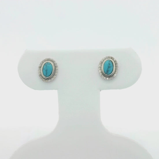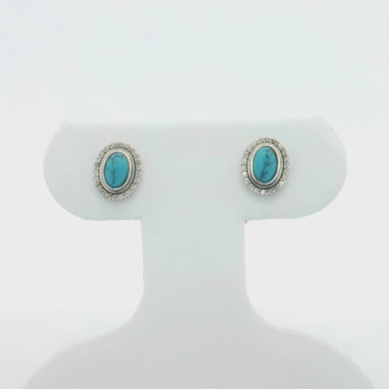 The Kelly Herd Oval Turquoise Earrings evoke a classic cowgirl look. The timeless oval shape will take you from a morning on the ranch to the finest evening gala! The turquoise details of the ovals are accented with brilliantly sparkling cubic zirconia stones. These pair perfectly with the Kelly Herd Oval Turquoise Pendant Necklace.