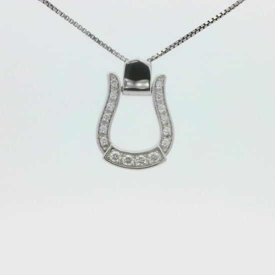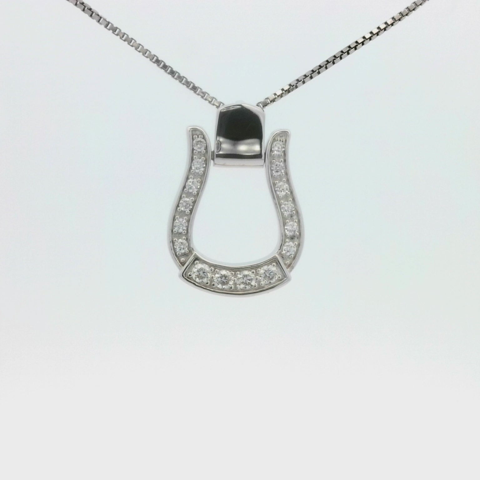 Cowgirl up with the Kelly Herd Oxbow Stirrup Necklace! This necklace features a Western oxbow stirrup shaped pendant fully enhanced with clear cubic zirconia. Made of sterling silver, it comes with an adjustable 16-18" chain.