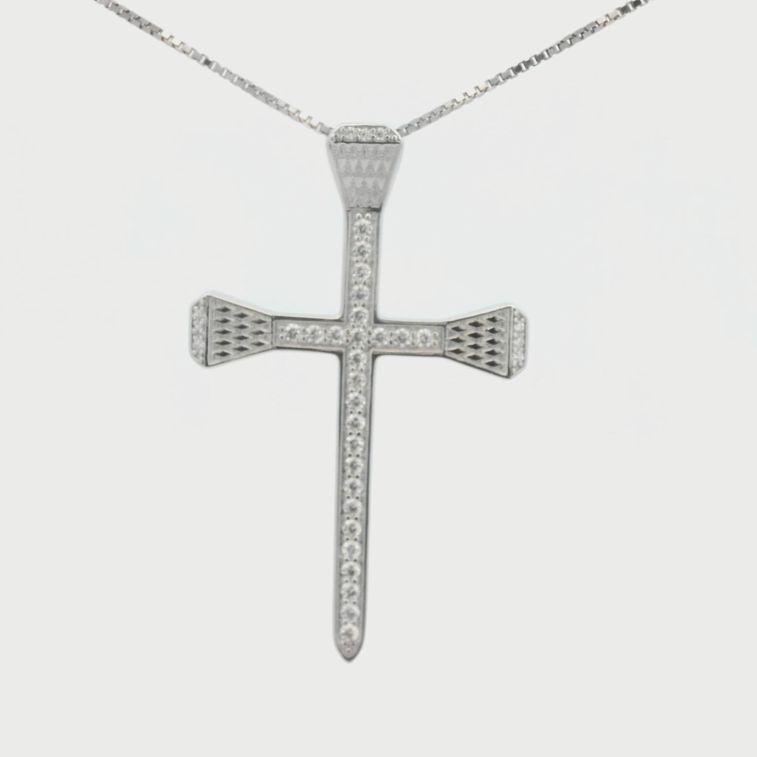 Kelly Herd Pavé Horseshoe Nail Cross Necklace - Sterling Silver
