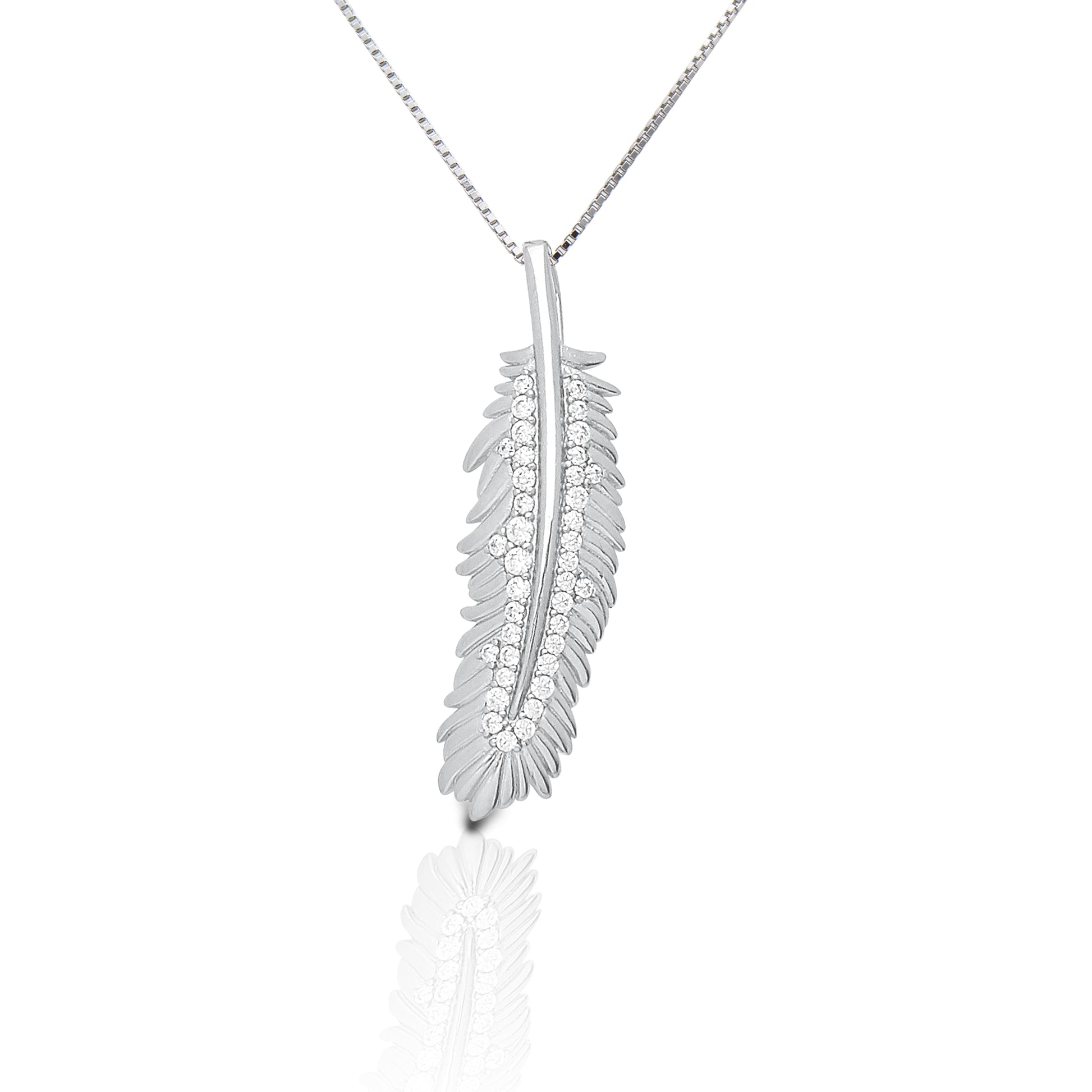 Kelly Herd Shimmering Feather Pendant Necklace - Sterling Silver