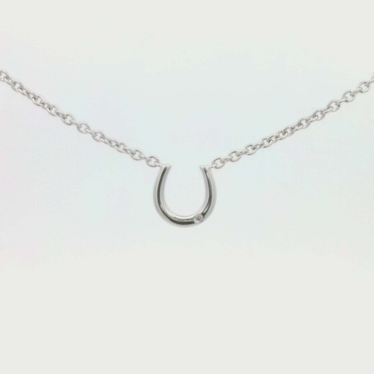 Modern and clean, the Kelly Herd Single Stone Horseshoe Necklace features a stylized sterling silver horseshoe with a small off set CZ stone. Adjustable 16-18" chain.