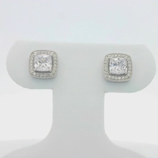 Kelly Herd Square Bezel Set Pave Earrings - Sterling Silver