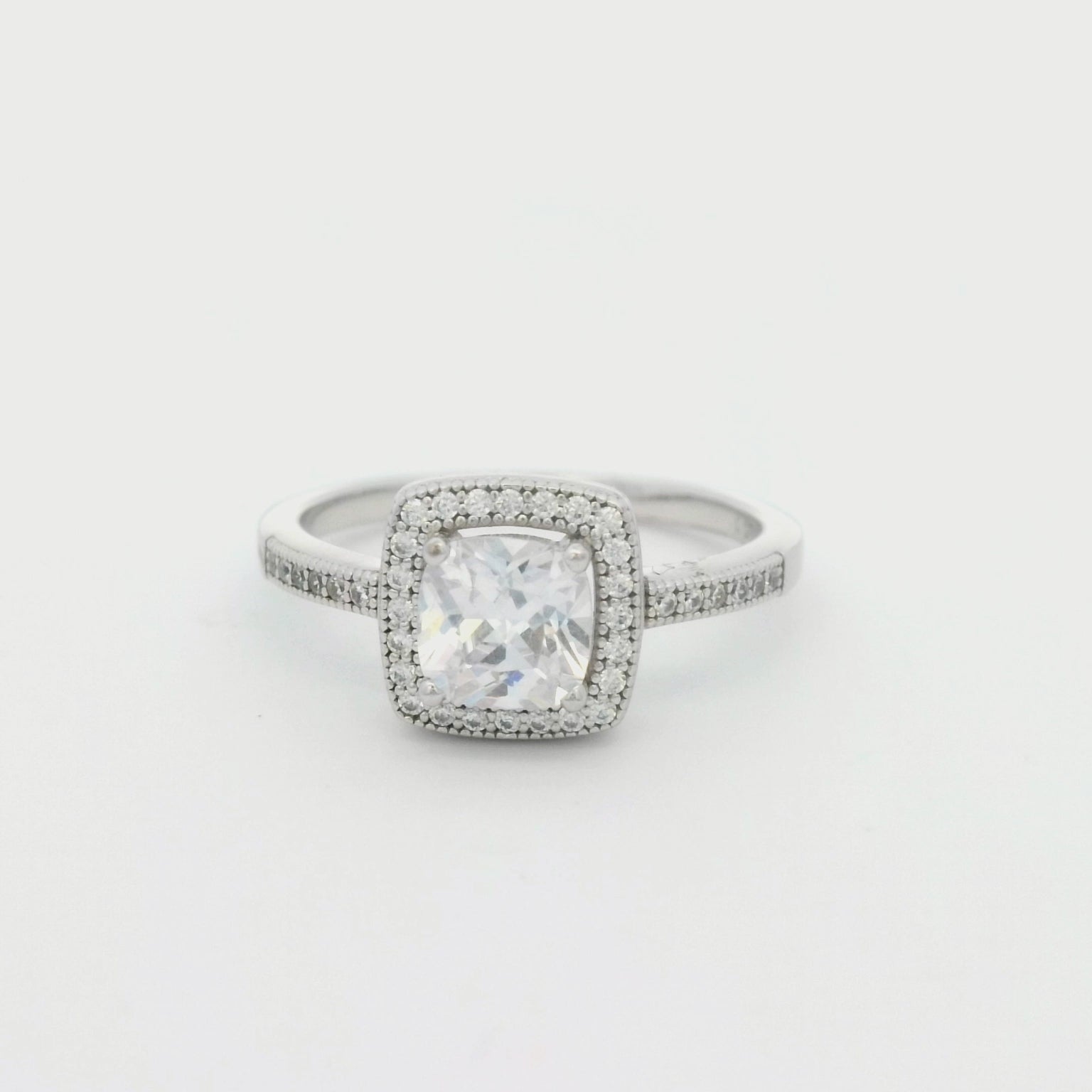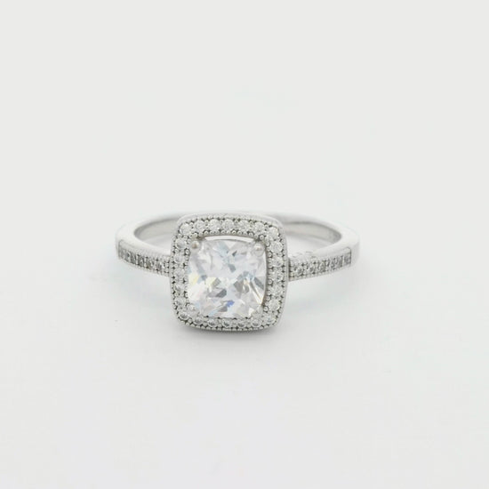 The Kelly Herd Bezel Set Pavé Ring is a classic vintage style. This ring features square bezel set pavé CZ in a sterling silver setting. Matching earrings and necklace are also available.