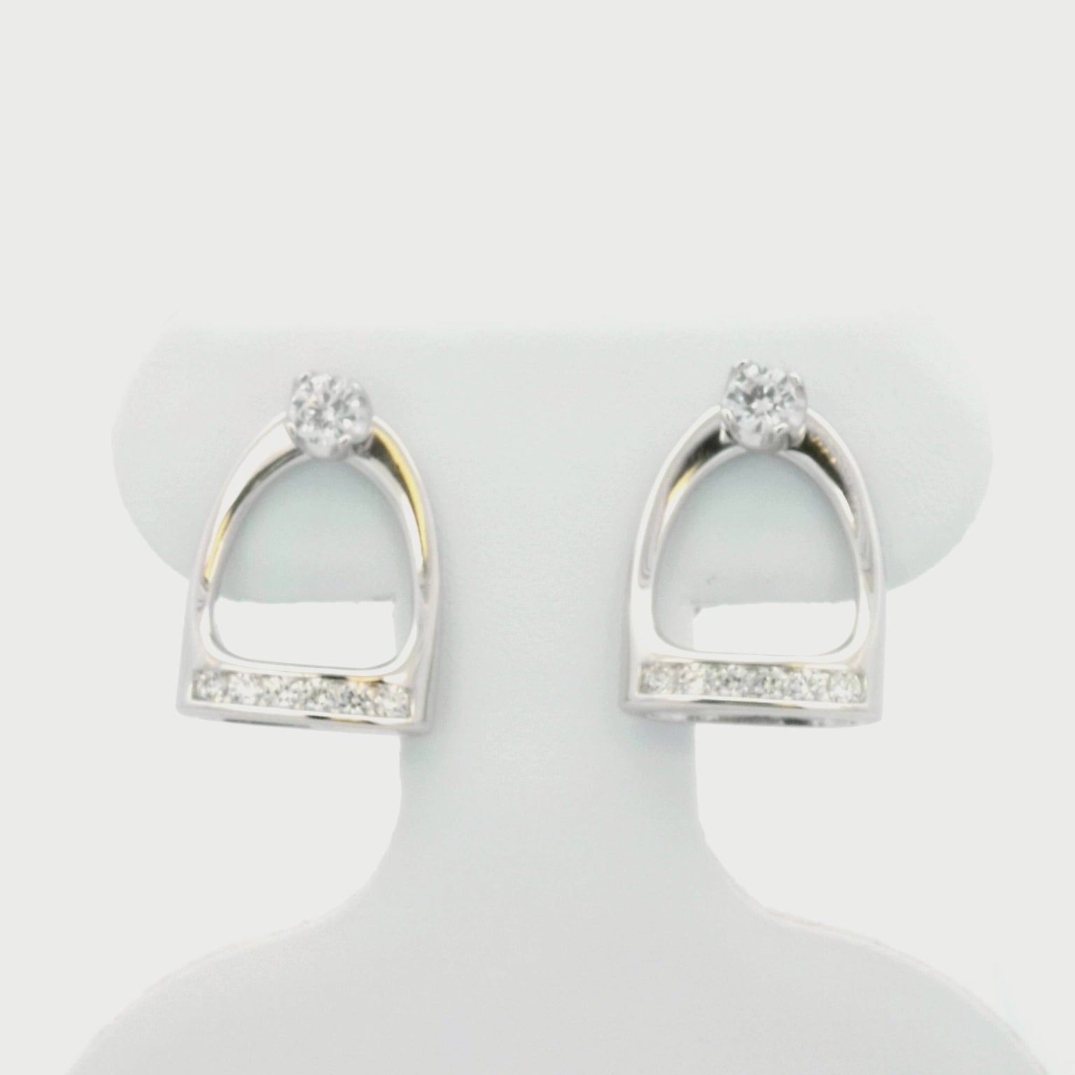 Go classic or go equestrian! With Kelly Herd Stud Earrings & Large English Stirrup Jackets you can choose. These clear cubic zirconia stud earrings come with English stirrup shaped jackets; wear the studs alone or with the jackets for an equestrian touch. Crafted in sterling silver, these earrings would make a great gift for the English equestrian in your life.