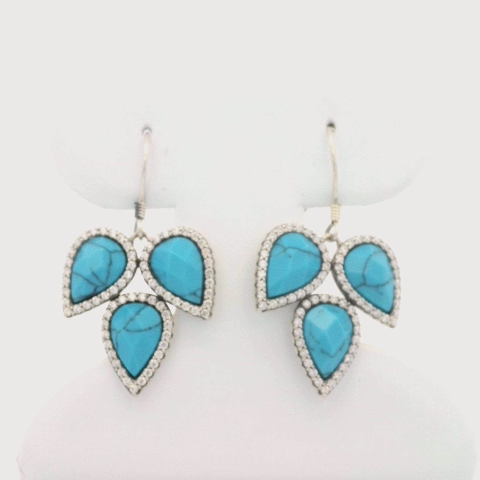 Kelly Herd Three Teardrop Turquoise Hook Earrings - Sterling Silver