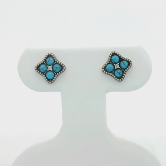 The Kelly Herd Turquoise Cluster Earrings feature a distinctive four stone design that is sure to turn heads. The unique design will elevate your look from simple boots and denim to the toast of Broadway. The turquoise details are perfectly accented with a brilliantly sparkling center cubic zirconia stone. These pair perfectly with any pendant from the Kelly Herd Turquoise collection.