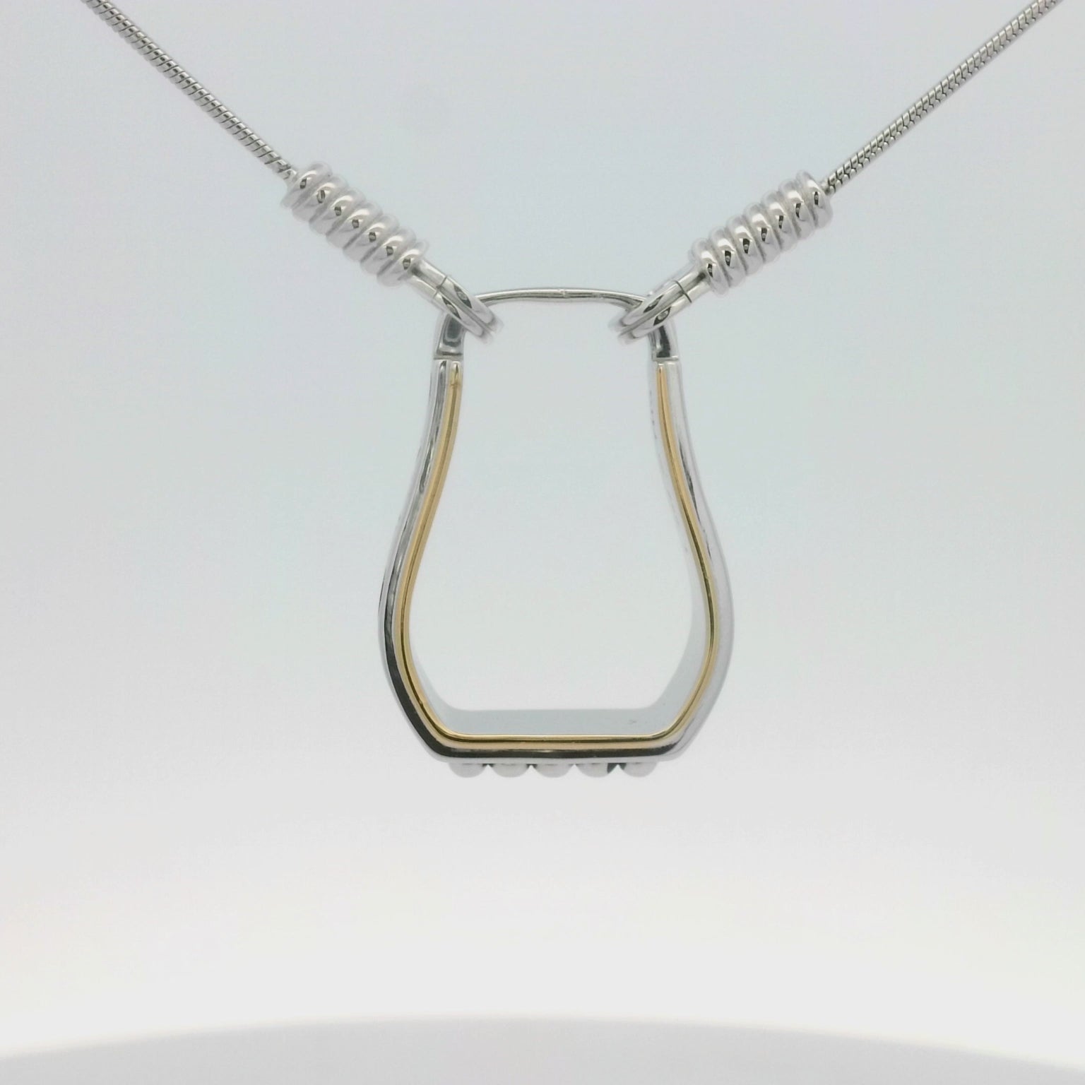 Kelly Herd Two Tone Engraved Western Stirrup Necklace - Sterling Silver