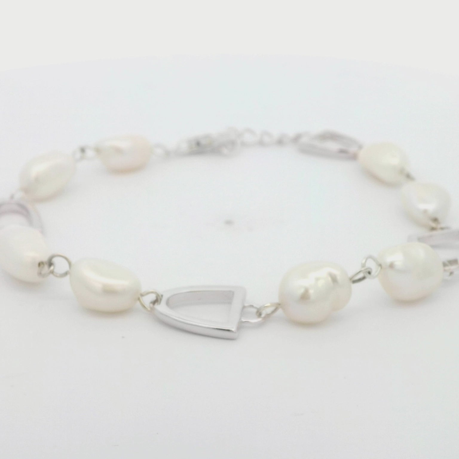 Elevate your jewelry collection with this stunning adjustable bracelet, designed to blend elegance with versatility. Featuring 8 lustrous pearls, each carefully selected for its natural beauty, this bracelet is enhanced with 4 intricately designed sterling silver stirrups for a touch of sophisticated charm.