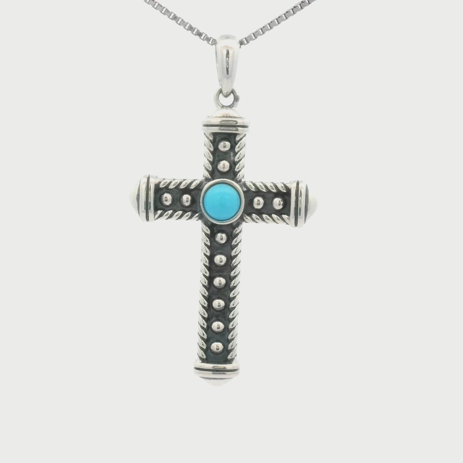 - Genuine Turquoise Stone: A captivating round turquoise stone set at the center of the cross, offering natural beauty and striking color.